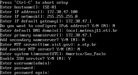 Ao acessar o setup do ISE, serão solicitadas as seguintes informações;