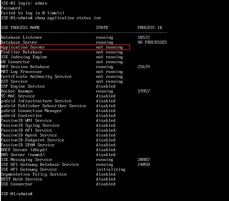 Para o ISE começar a funcionar, ele depende que outros serviços sejam inicializados primeiro, como mostrado na imagem, no meu caso ele ainda não havia sido iniciado.