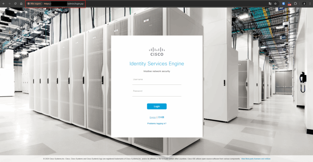 Uma vez que isso aconteça, você já pode verificar via web que o ISE já aparecerá a tela de login. Lembre-se de incluir https antes do IP/Nome para conectar via web.
